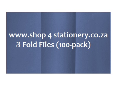 355x230x220x230mm. 100-Pack 180gsm Board. Blue 3 Fold Files. With Folding Marks. Delivery only available in Gauteng