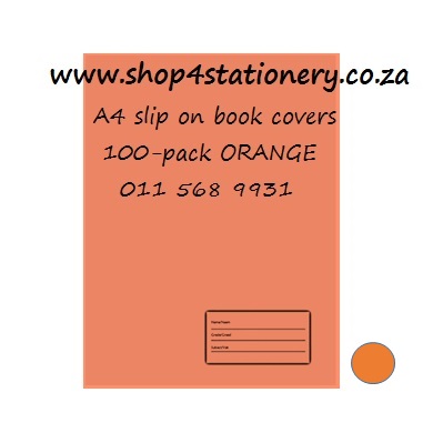 Orange A4 Slip on Book Covers. Pack of 100. A4 Fitted Orange Plastic Book Covers, 60-75mic. (colour dot on picture represents the shade of colour). Supplied in advertised colour. Without additional print on plastic, Name block location might differ on cover.