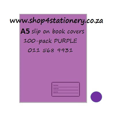 Purple A5 Slip on Book Covers. Pack of 100. A5 Fitted Purple Plastic Book Covers, 60-75mic. (colour dot on picture represents the shade of colour)