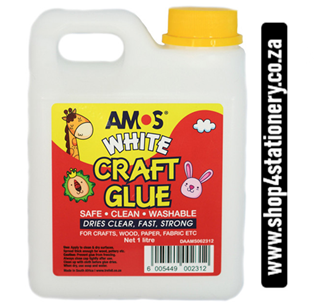 1-Litre Multipurpose Glue. Amos White Craft Glue/Office Glue. Suitable for wood, paper, cardboard, fabric. Water based non toxic glue