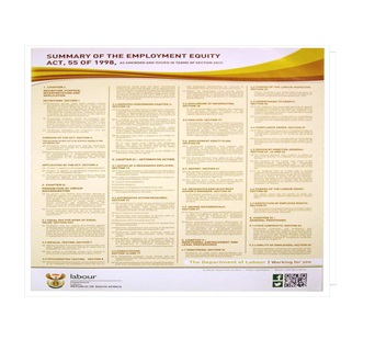SUMMARY OF THE EMPLOYMENT EQUITY ACT 55 OF 1998. A1 Laminated Chart Size-594x841mm.