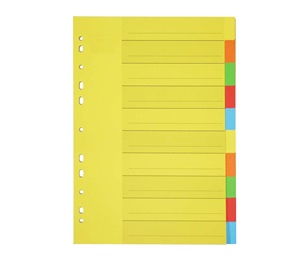 10 Tabs Blank/Unprinted Index. Assorted Colours Pack. Pvc Type. Made From Hard Durable Plastic.