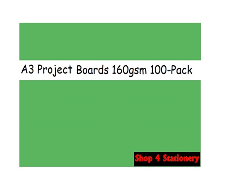 100-Pack A3 Green Project Boards 160gsm. Size-297x420mm.