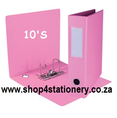 Pack of 10 A4 Pink Lever Arch File. 70-80mm Spine. 317mm A4 Upright, Colour: Pink Board