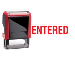 ENTERED Self Inking Stamp. Imprint/Block Size-38x14mm. Ink Pad/Colour-Red.