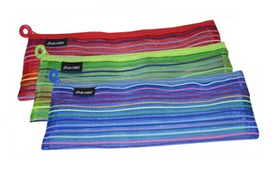 Bantex Zippa Striped Mesh DL Pencil Case. Size-240x120mm. Available in Colours. Blue/Red/Green. Brand-Bantex (B2073)