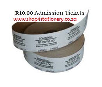 R10.00 Admission Tickets. 1000 tickets per roll. ADM1000: R10.00