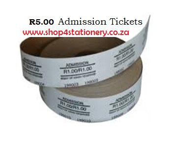 R5.00 Admission Tickets. 1000 tickets per roll. ADM0500: R5.00