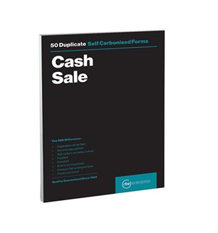 RBE Cash Sale Pad A5 (F0102). For all your CASH SALES transaction, the RBE duplicate A5 Cash Sale pad is your perfect companion. Product Details: 50 self carbonised duplicate sets per pad, Printed copies for better record keeping, Punched for easier filing, NCR or No Carbon Required, Bound at the head, Drawn on cover acts as writing shield.