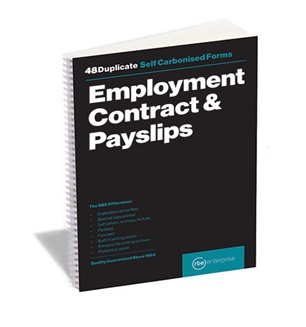 RBE EMPLOYMENT CONTRACT & PAYSLIP BOOK, is the perfect spiral bound perforated A5 book for small business and households.
