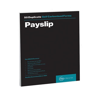 RBE PAYSLIP books are carbonless pads, bound at the head, containing 50 sets of printed duplicates available in A5 or 148mm x 210mm books, have a write shield attached to slide in between sets. Product Details: 50 self carbonised duplicate sets per pad, Printed copies for better record keeping, Punched for easier filing, NCR or No Carbon Required, Bound at the top, Cover used as the writing shield.