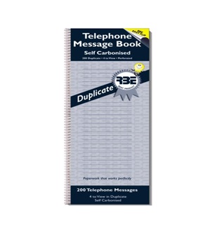 RBE TELEPHONE MESSAGE BOOK 4 to VIEW containing 200 printed and duplicate sets of perforated and spiral bound message notes.