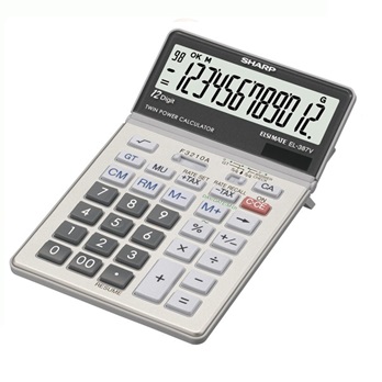SHARP EL-387 Dual Power Desktop Calculator. 12 Digit Line Calculator with Punctuation, Function Symbol, Resume Function,Check Answer, Check, Tax, Day, Date & GT. Size:107x169x19mm