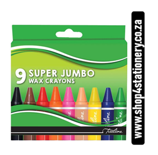 Treeline 9-Pack Assorted Super Jumbo Wax Crayons. 14mm Diameter.