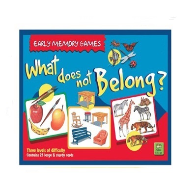 Develops logical thinking, observation, association and vocabulary. 25 large, sturdy cards in 3 levels of difficulty. Each card has the pictures of a group of objects and one picture that does not belong to that group. The child has to find the odd one out. Foundation Phase Grades R-3. Age 4-7. Order Code-2048